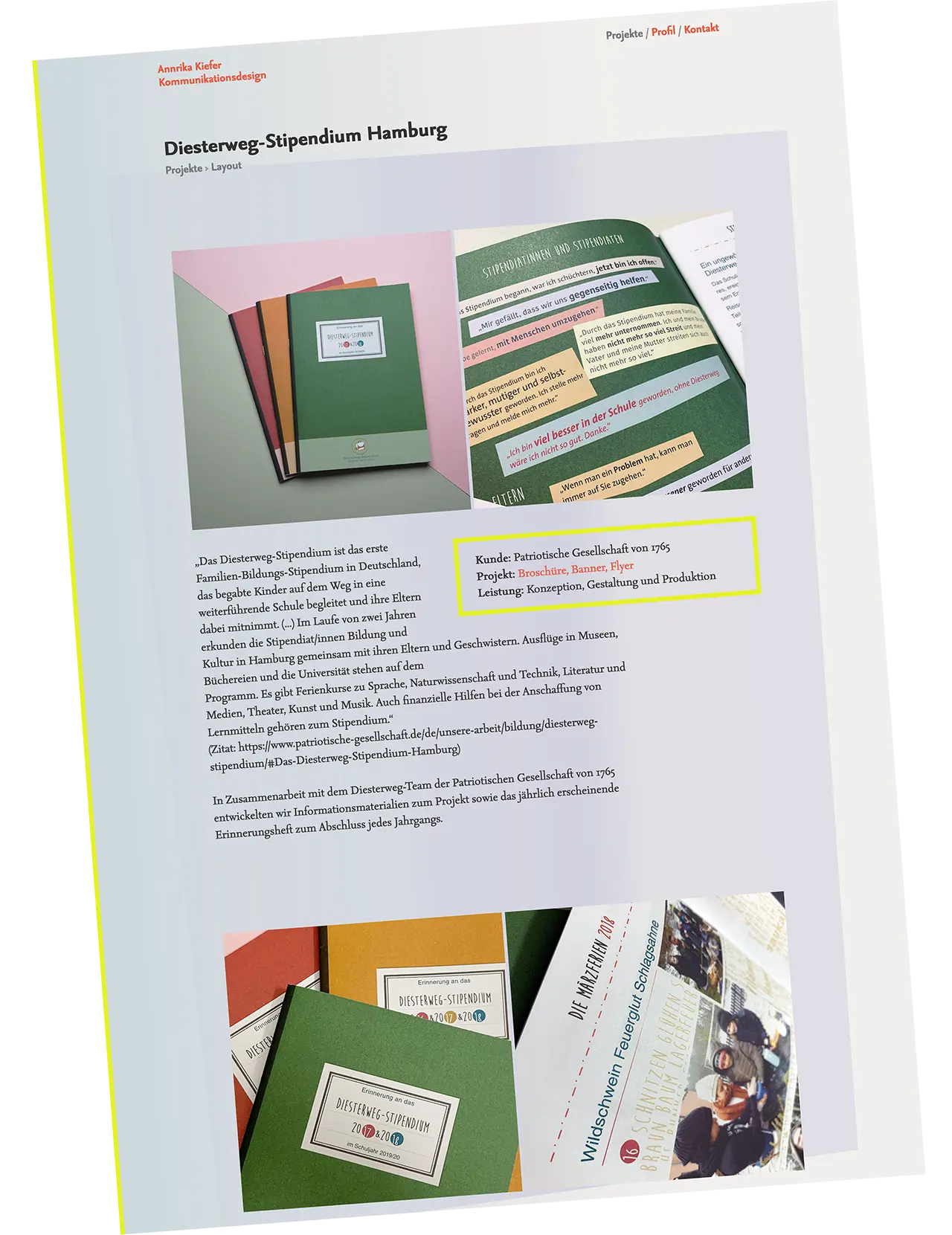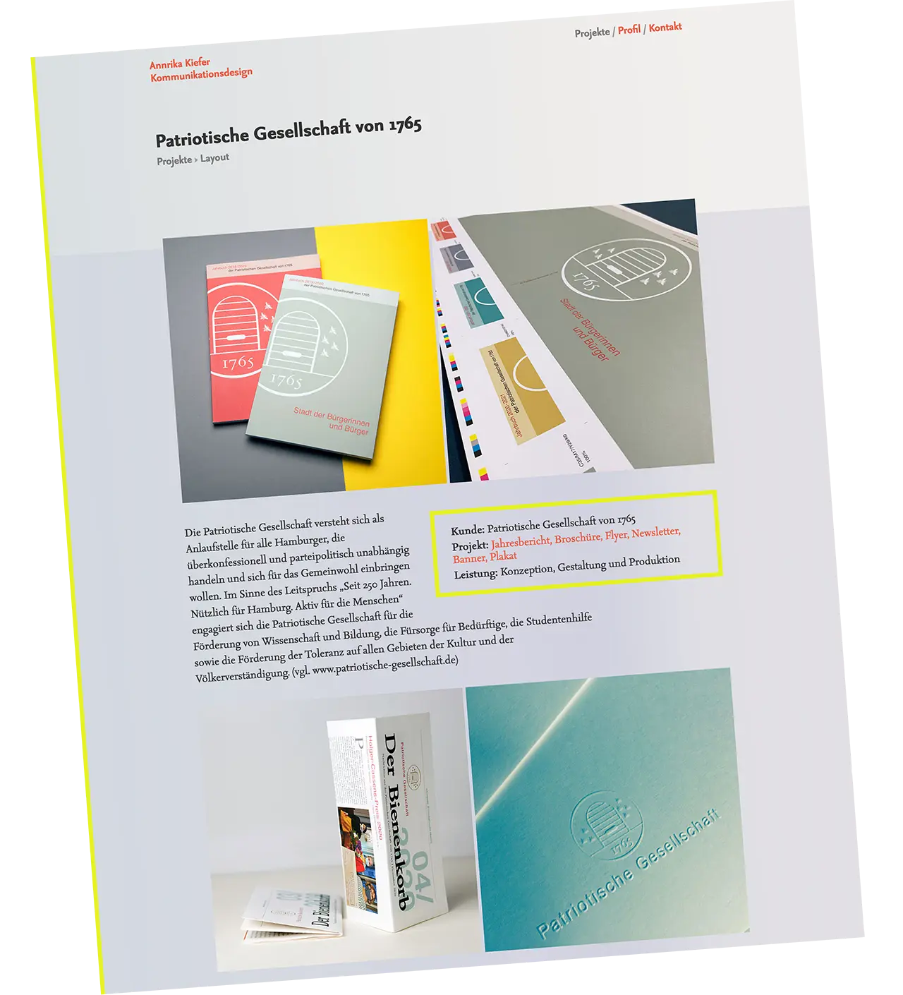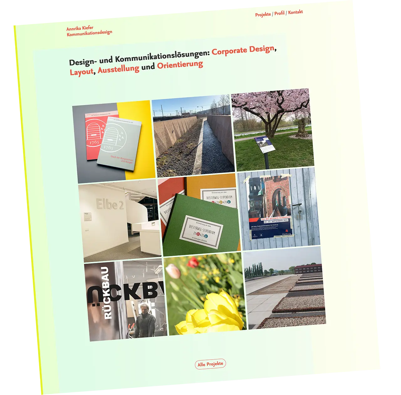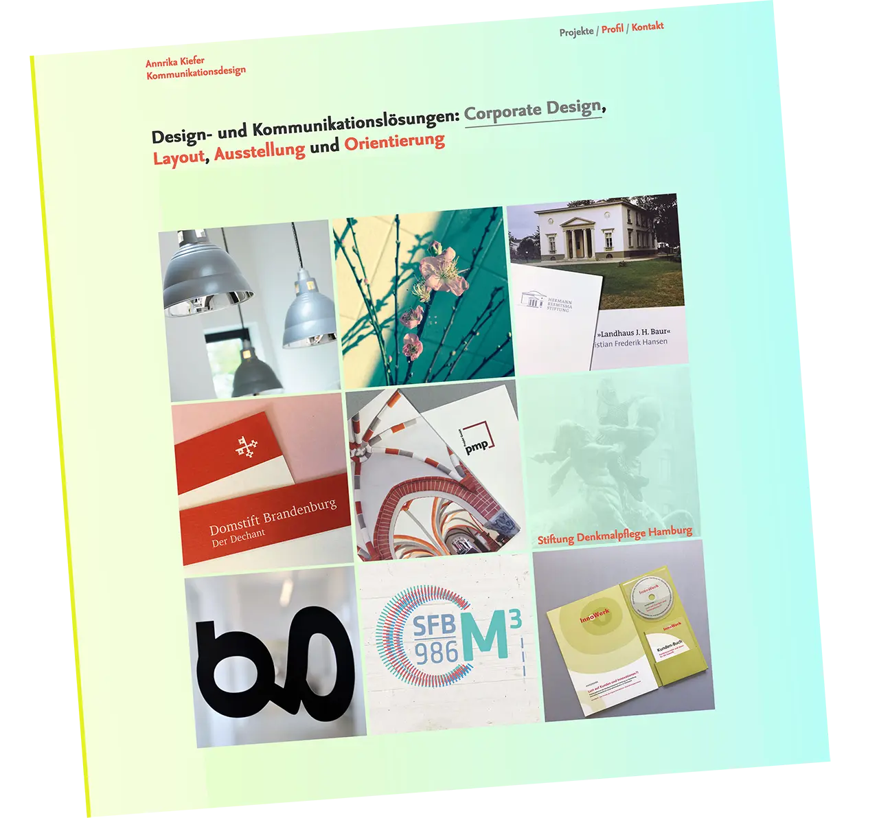 Annrika Kiefer bietet ganzheitliche Design- und Kommunikationslösungen, die von der Entwicklung eines Corporate Designs und Layouts bis hin zu Ausstellungen und Orientierungssystemen reichen.