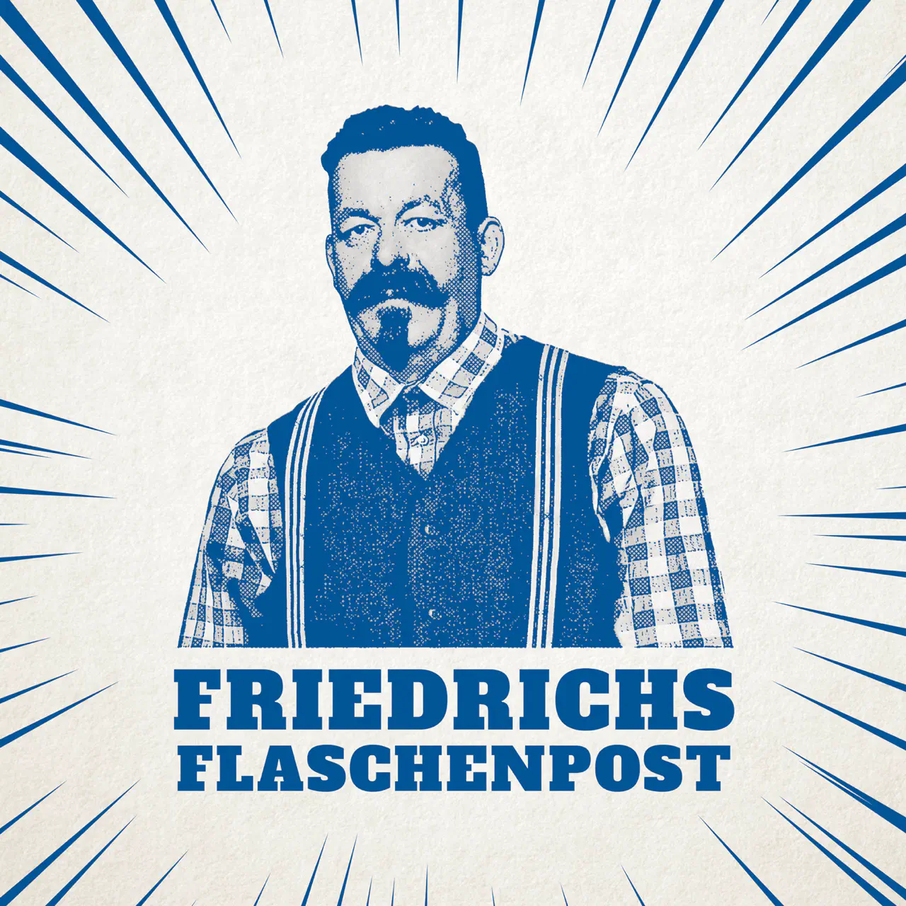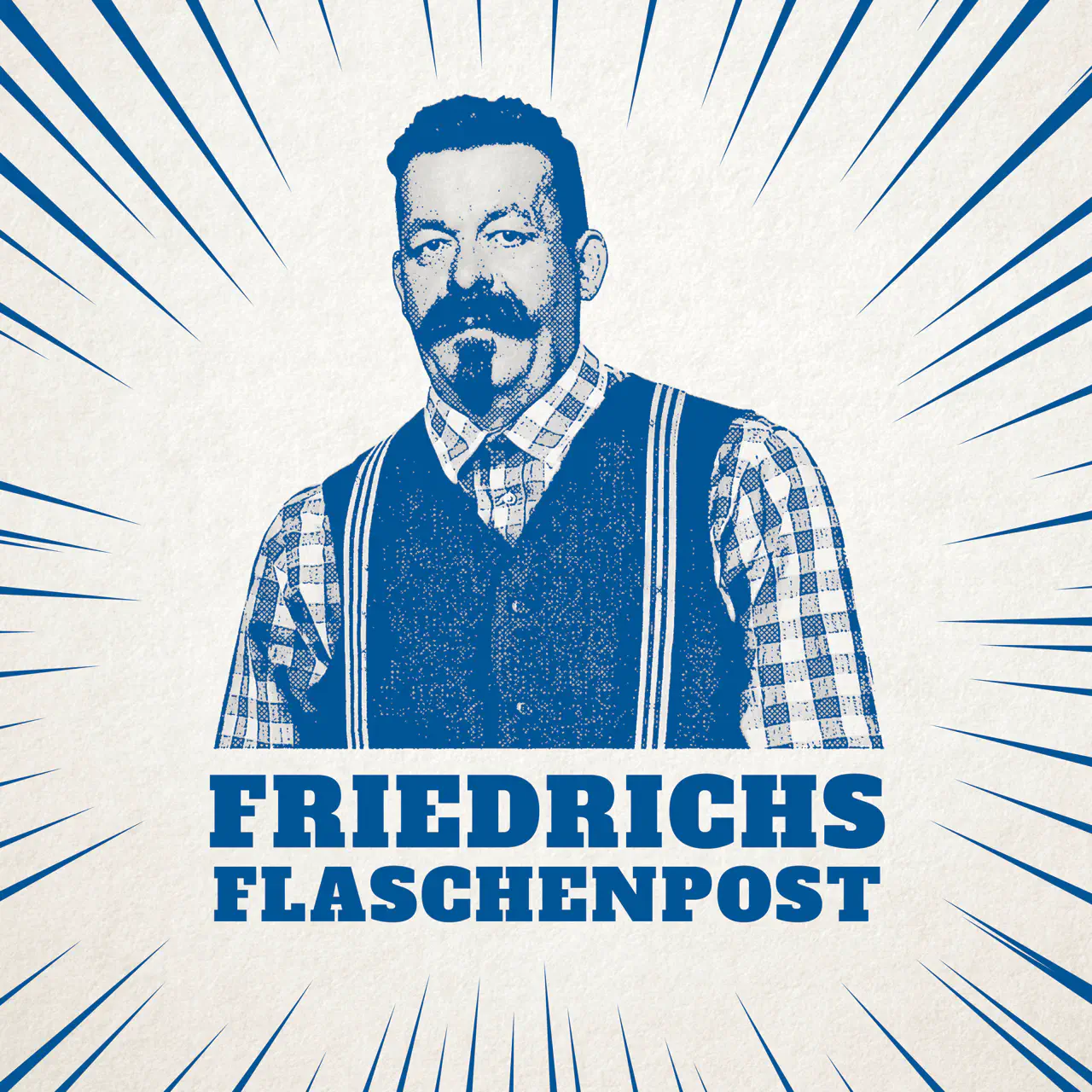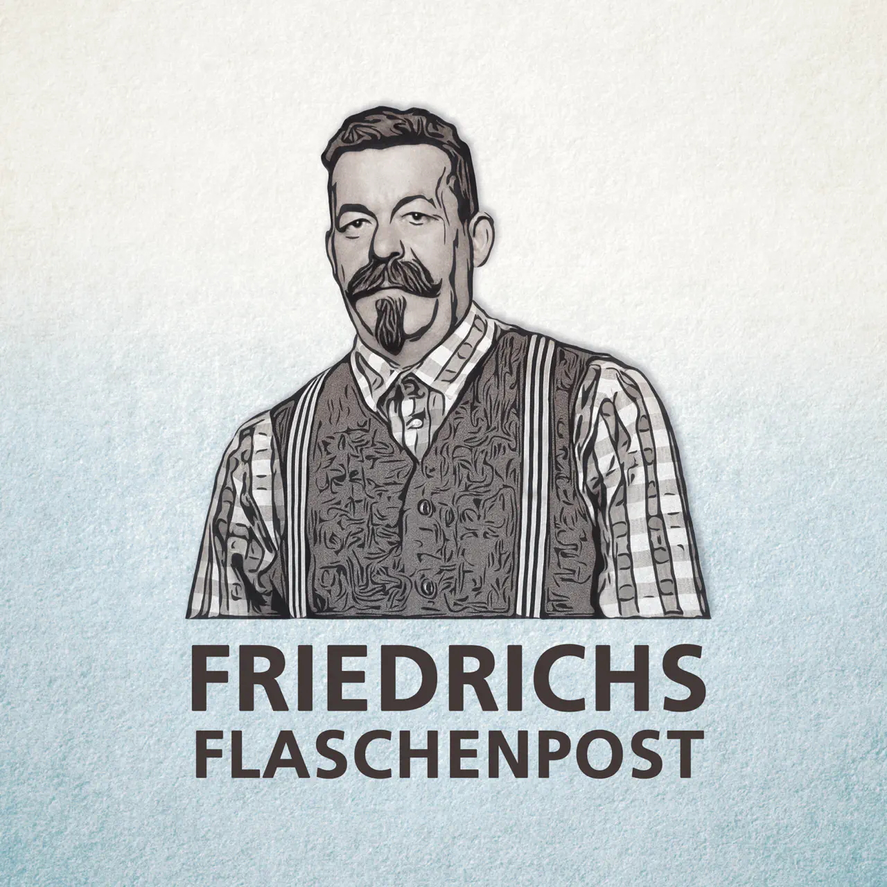 Das Podcast-Cover stellt das visuelle Erkennungsmerkmal des Podcasts „Friedrichs Flaschenpost” für die verschiedenen Ausgabeplattformen dar. Das erfolgreiche Design spiegelt relevante Elemente des Inhalts wider und bietet eine klare Lesbarkeit sowie ästhetische Anziehungskraft.