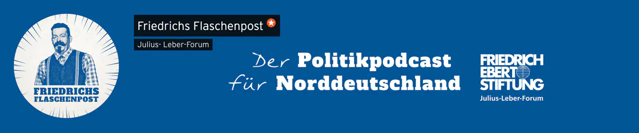 Die Gestaltung der Formate für den Politikpodcast „Friedrichs Flaschenpost” umfasst ein Podcast-Cover, ein Header-Bild für die FES-Website und SoundCloud sowie Grafiken für Social-Media-Plattformen. Der Podcast richtet sich an ein Publikum, das sich für Politik in Norddeutschland interessiert, und tritt in einen Dialog mit politisch engagierten Personen oder denen, die sich für politische Bildung einsetzen.
