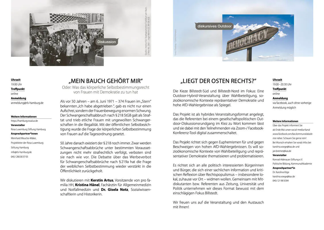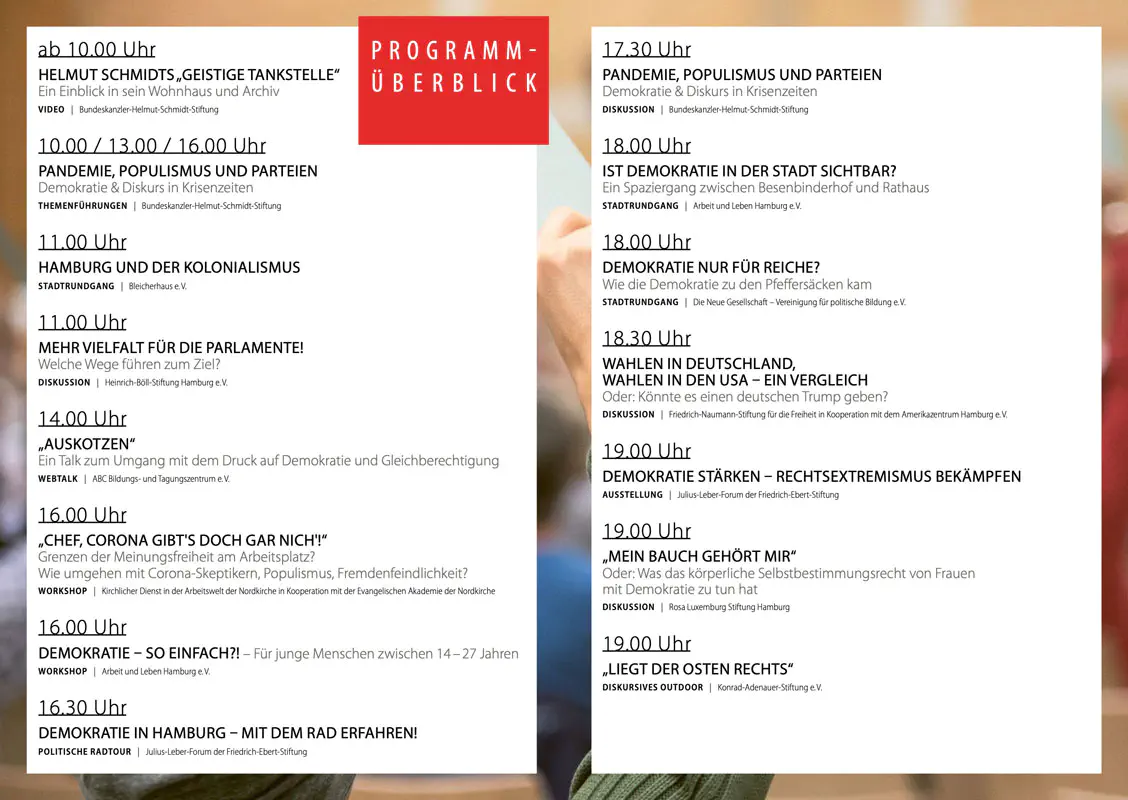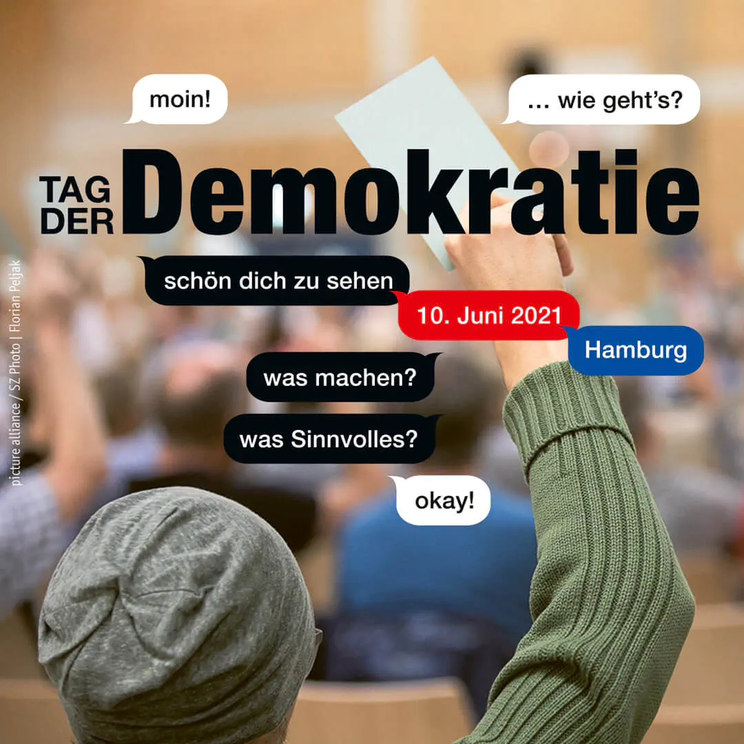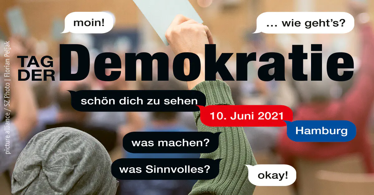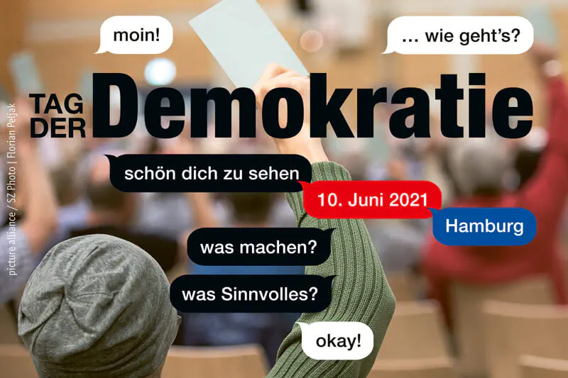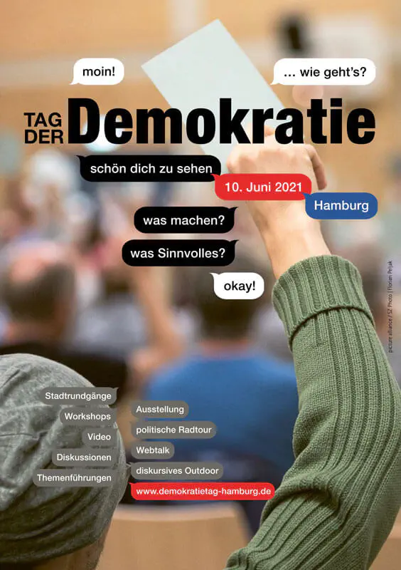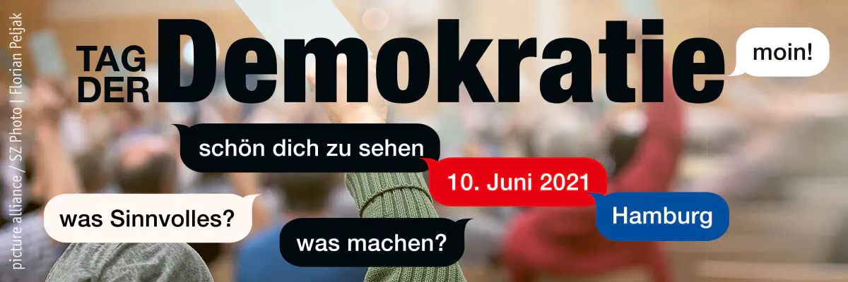 Elf verschiedene politische Bildungseinrichtungen aus Hamburg haben sich gemeinsam für den ersten Hamburger »Tag der Demokratie« im Jahr 2021 engagiert.