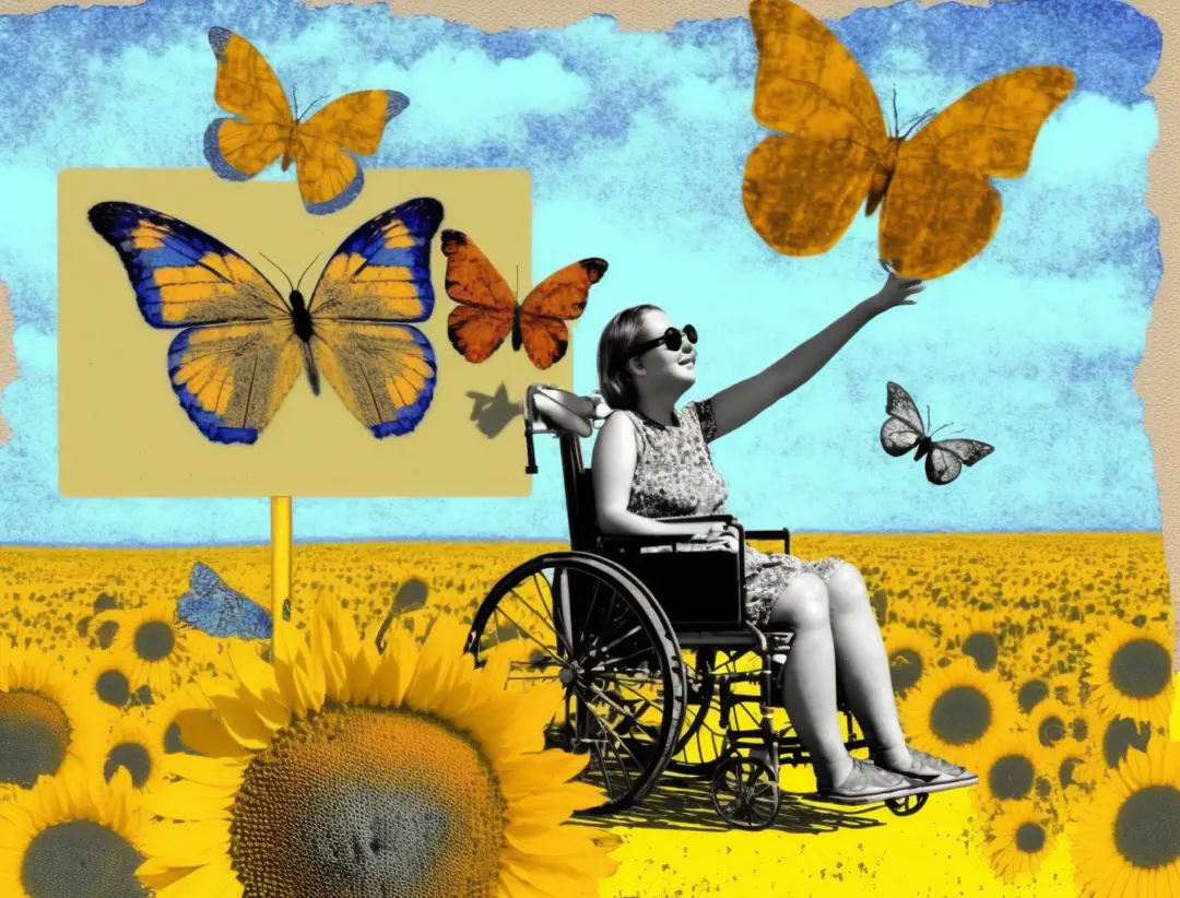 Seit Frühjahr 2023 erstellen wir mittels KI künstlerische Collagen, die Inklusion visuell neu denken. Sie zeigen Menschen mit Behinderungen als kraftvolle Persönlichkeiten voller Lebensfreude – jenseits gängiger Narrative.