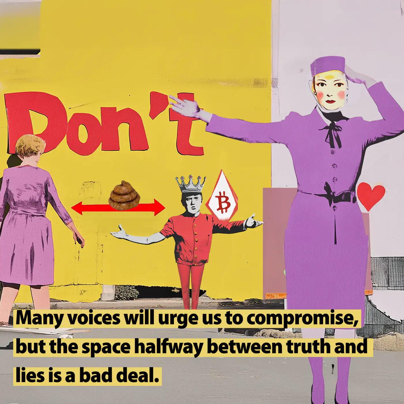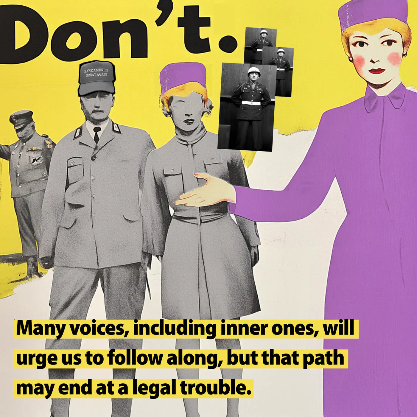 DON'T -- After reading "Authoritarians like Trump love fear, defeatism, surrender. Do not give them what they want" by Rebecca Solnit @rebeccasolnit.bsky.social in The Guardian, I put together three digital cut-out collages using some of her text ideas.