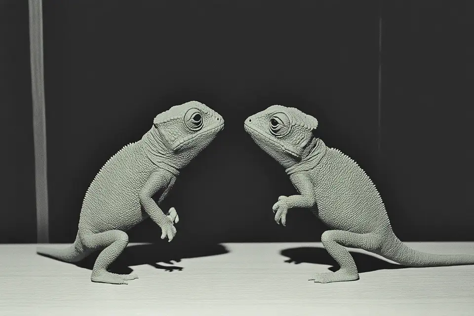 In dieser Serie wird der Fokus auf die Symmetrie und Komposition statischer Doppelgängerporträts gelegt. Die Unklarheit oder das Fehlen des zweiten Abbildes weckt Neugier und eröffnet Raum für eine fotografische Fantasie. Die Frage, ob der Doppelgänger lediglich ein Spiegelbild oder ein eigenständiger neuer Begleiter sein wird, bleibt bewusst offen. Diese Ungewissheit lädt dazu ein, in den Bildern nach eigenen Antworten zu suchen und die Vorstellungskraft zu beflügeln.