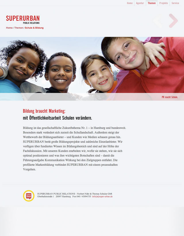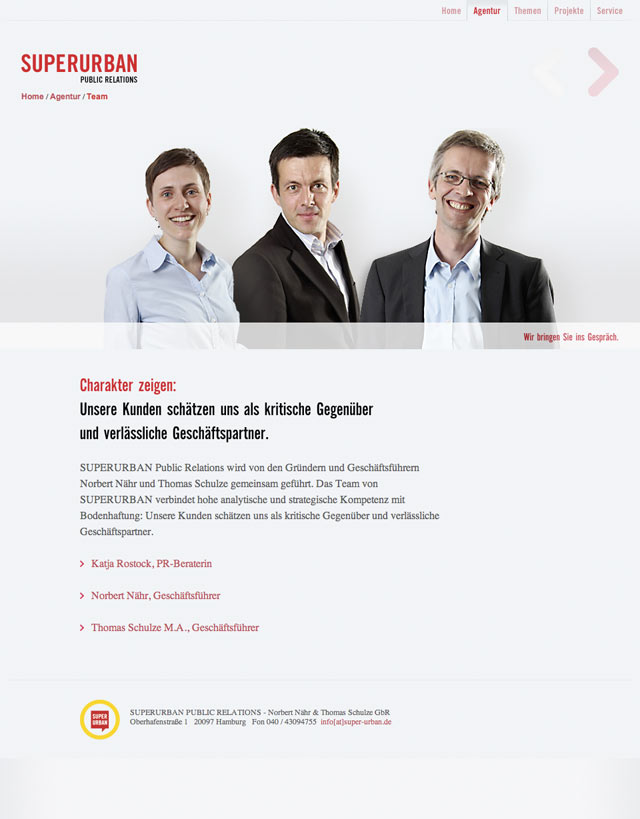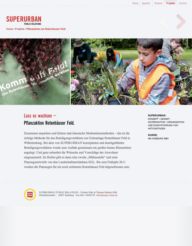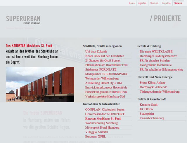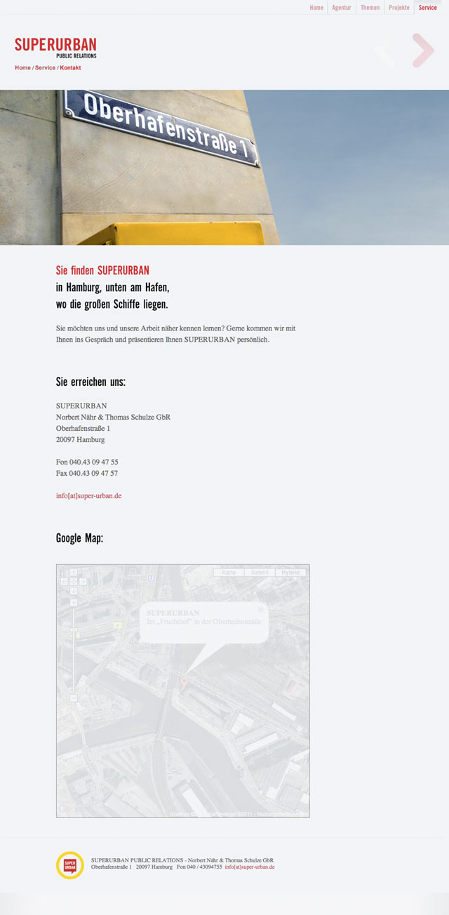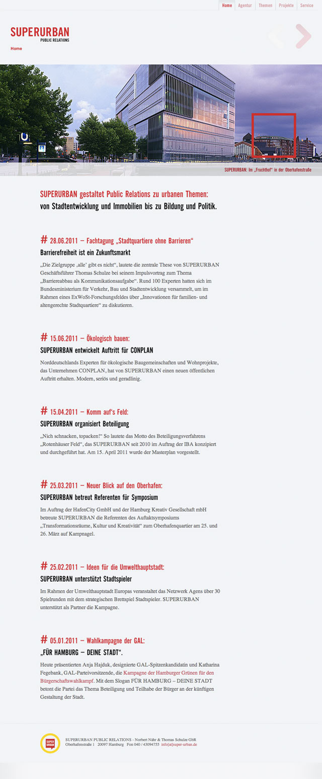 Kommunikation für Unternehmen, Organisationen und Standorte: Wir gestalteten den Internet-Auftritt für die in Hamburg ansässige PR-Agentur SUPERURBAN.