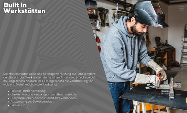 Neue Ideen für Barmbek-Süd: Am Holsteinischen Kamp entwickelt die steg Hamburg bis 2020 einen innovativen und urbanen Gewerbe- und Handwerkerhof. Built in Barmbek ist ein Ort für Arbeit und Produktion: bietet Raum für kleine Manufakturen, einen Tech Hub, Musikproduktionen, Gewerbe- und Kunstateliers und Small Offices.