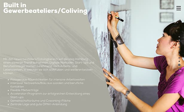 - OnePageLayout, RWD, interaktive Grafik, Webdesign, Themenimmobilie