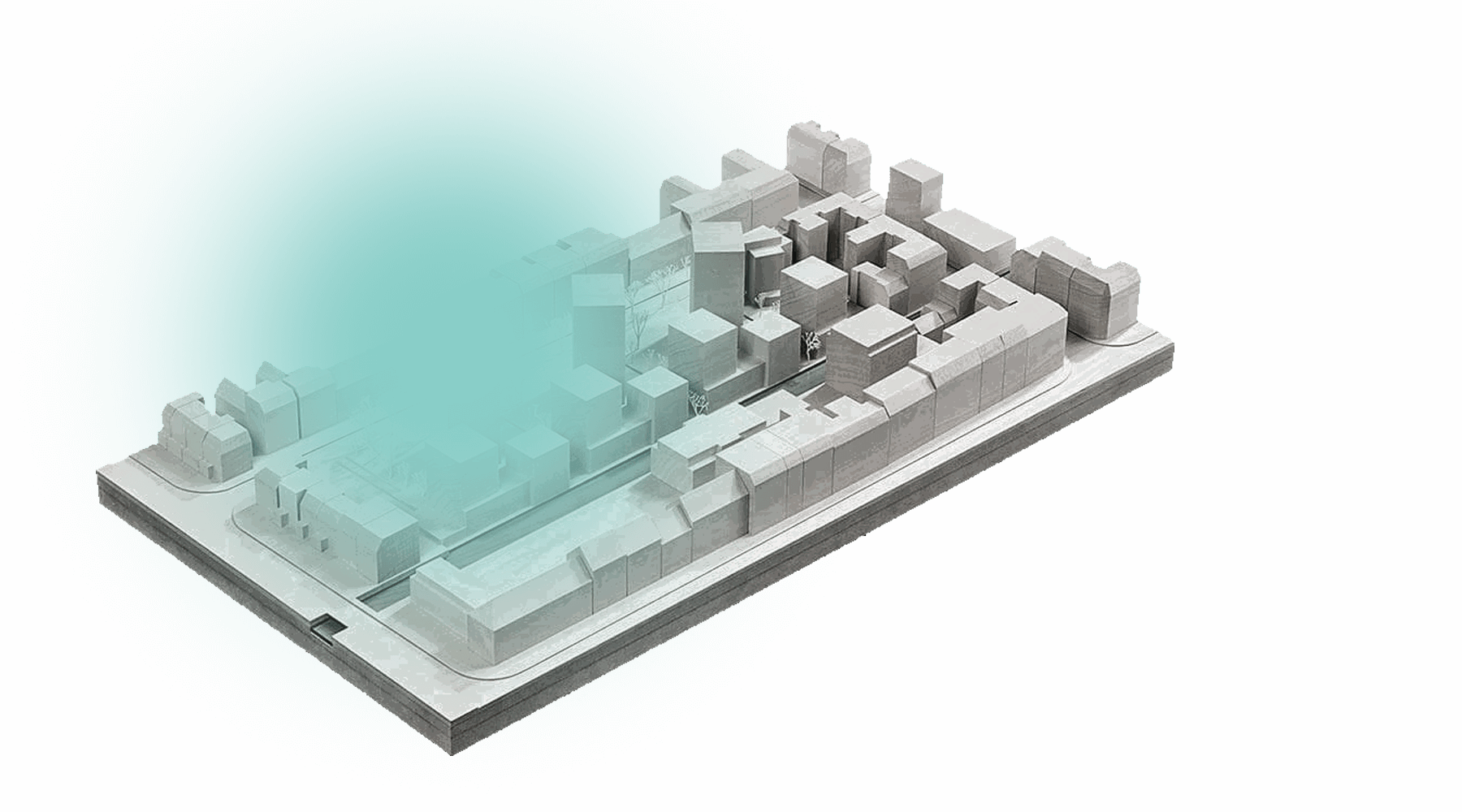 In einem 2. Abschnitt der Website Betreuung wurde eine animierte 3D-Ansicht der geplanten Bebauung in die Website integriert