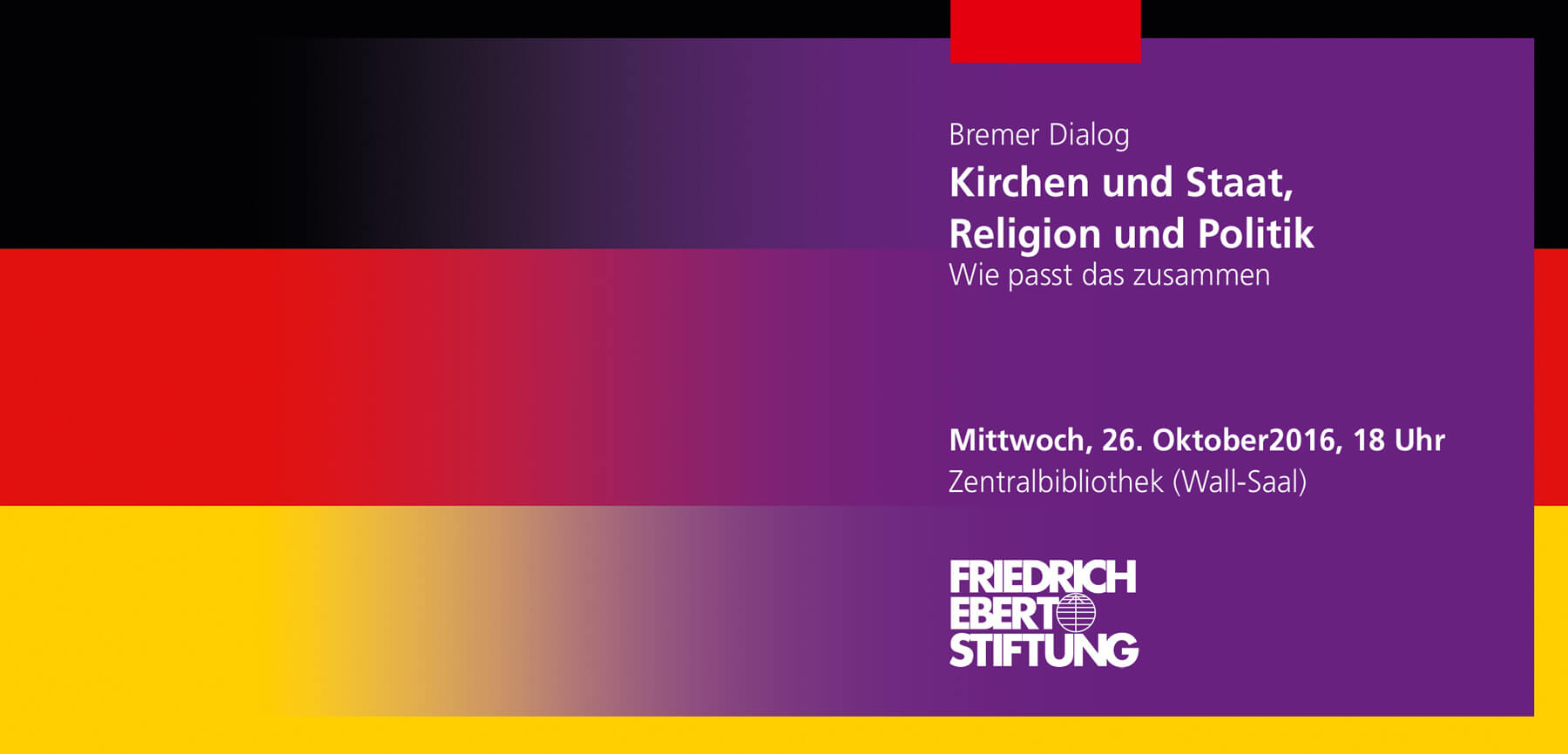 Kirche - Staat. Relegion - Politik. Violett steht in der evangelischen Kirche für Religiöses im Menschen, für Besinnung und Gebet. Die Flagge für den Staat.