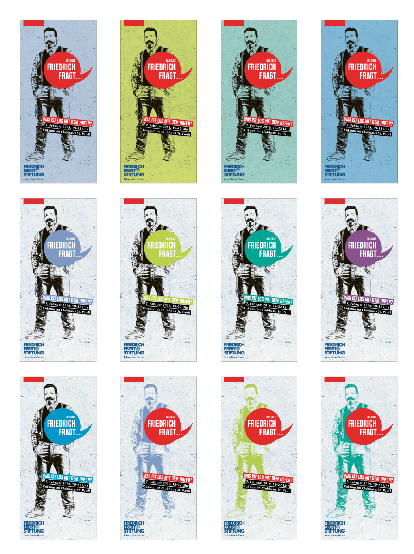 Oben unsere Motiv-Variationen dieser Veranstaltungsreihe. Flyer und Social Media