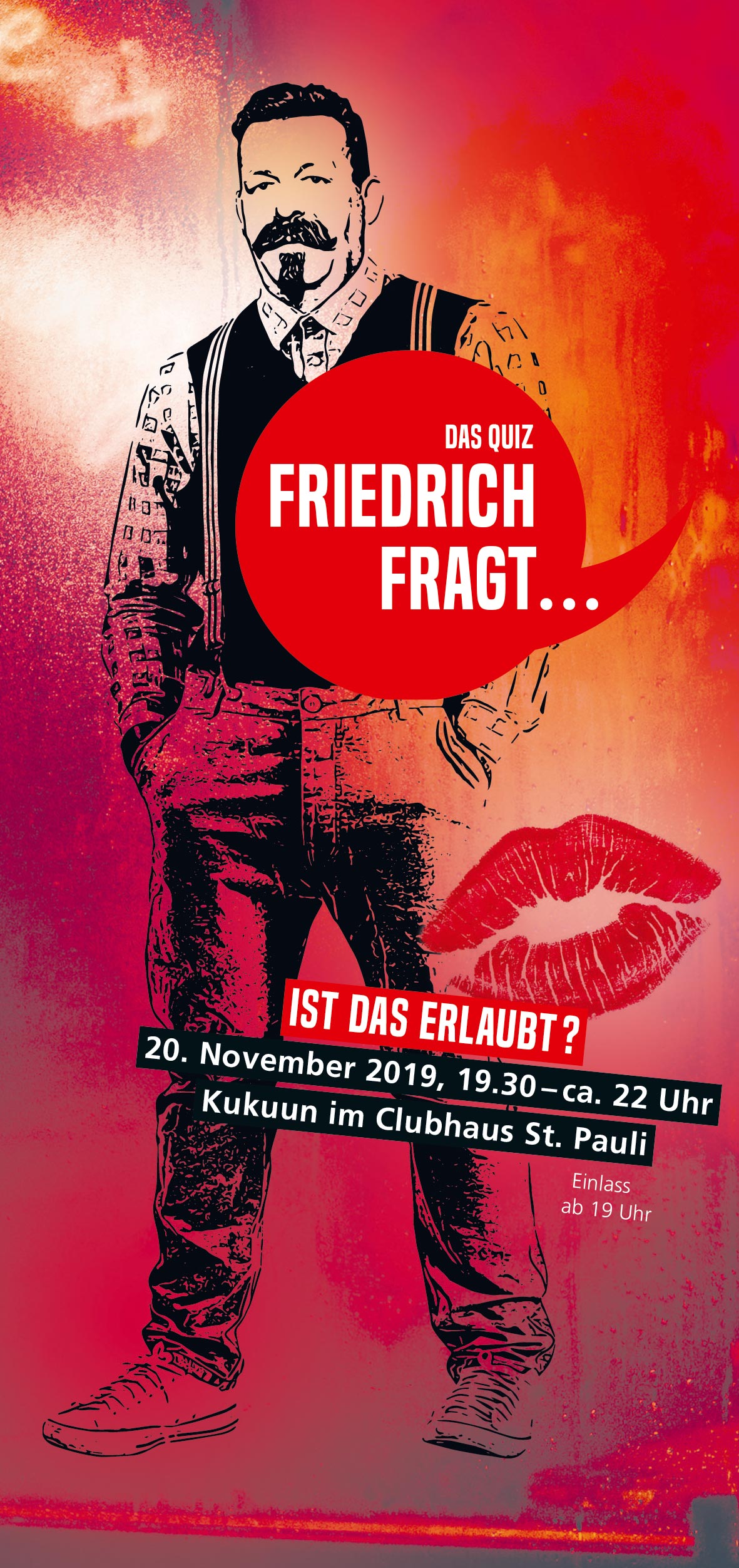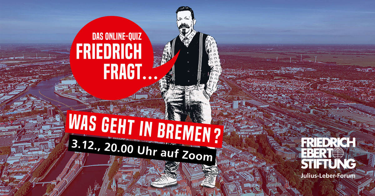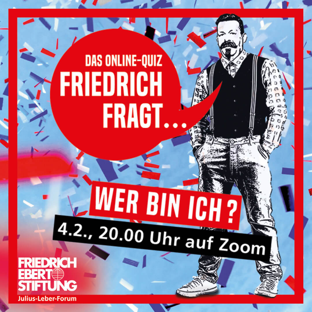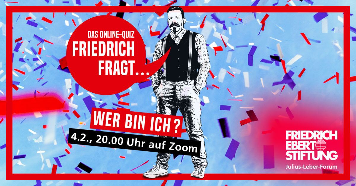 Frag Friedrich! Das Pubquiz (dt.: Kneipenquiz) hat eine lange britische Tradition: Man trifft sich in einer Kneipe und spielt zusammen einen Quiz. Das Ganze jetzt auch als ein Format der politischen Bildung: Frag Friedrich! Friedrich Ebert natürlich.