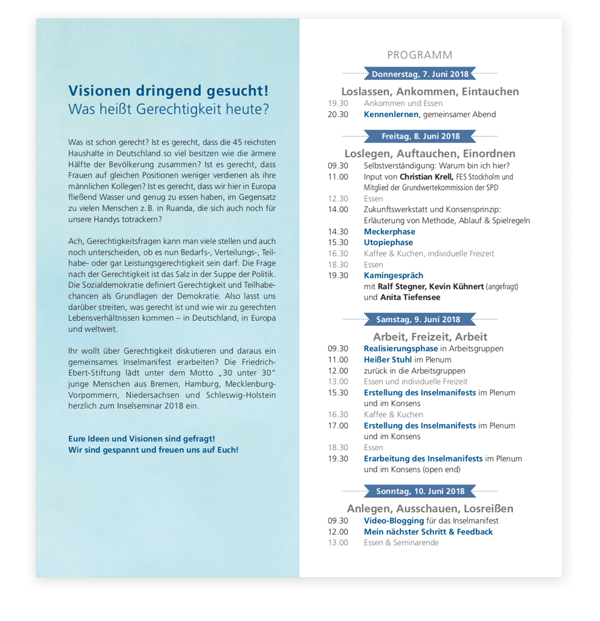 Die Friedrich-Ebert-Stiftung lädt jährlich junge Menschen bis 35 Jahre aus Norddeutschland zu diesem Inselseminar ein. Thema: Werte, Ideale und Zukunft sozialer Demokratie.