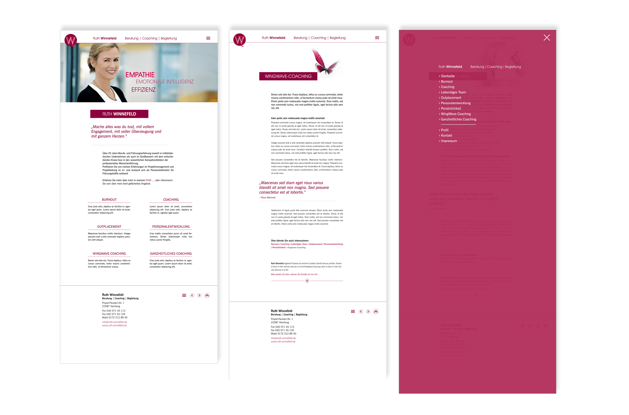 Ruth Winnefeld berät und coached Unternehmen und Privatpersonen im beruflichen und persönlichen Bereich. Die neu erstellte Website präsentiert die Schwerpunkte ihres Angebotes klar und strukturiert.