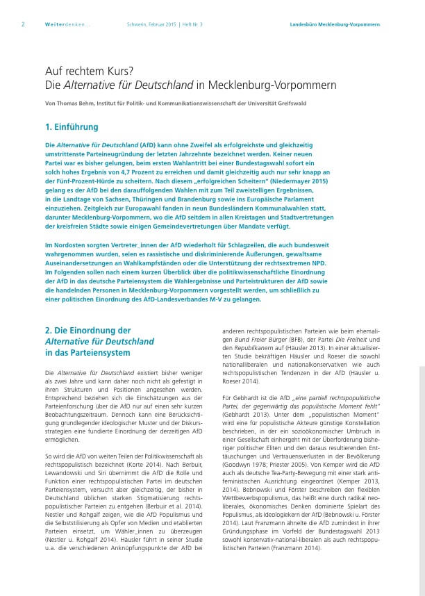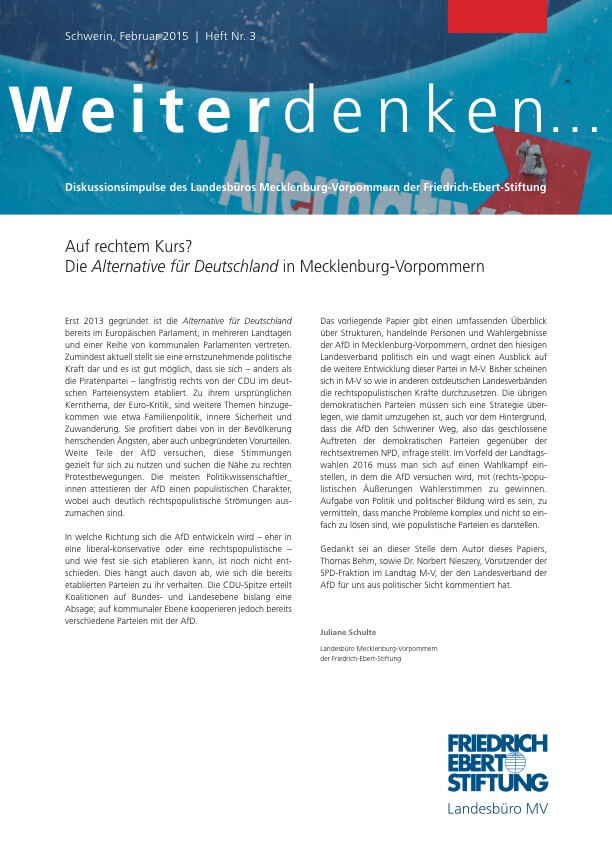 Diskussionsimpulse des Landesbüros Mecklenburg-Vorpommern der Friedrich-Ebert-Stiftung, übrigens die älteste politische Stiftung Deutschlands. Zu verschiedenen Themen aus Politik und Gesellschaft erscheint in lockerer Folge das Info-Heft.